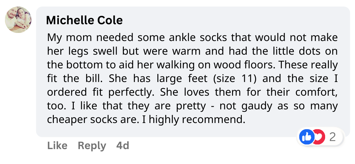 I have wood floors and socks without the grips can be dangerous as we get older. I slipped and fell, breaking my shoulder a couple of years ago. Now I always wear non slip socks. The problem with other socks is they tend to twist when walking around or sleeping and the grips end up at the top of my foot. These here are just perfect. They are so comfortable and stay in place no matter what. I’m so happy with them. Great fabric too.